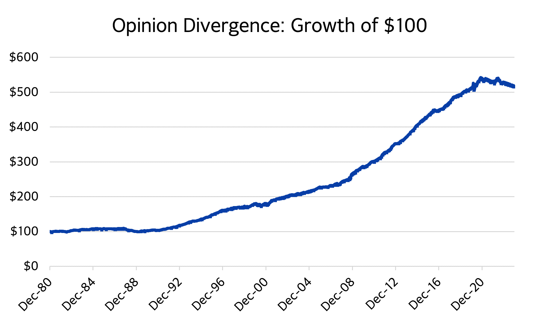 Research has shown that stocks with high Opinion Divergence tend to outperform in the long run.