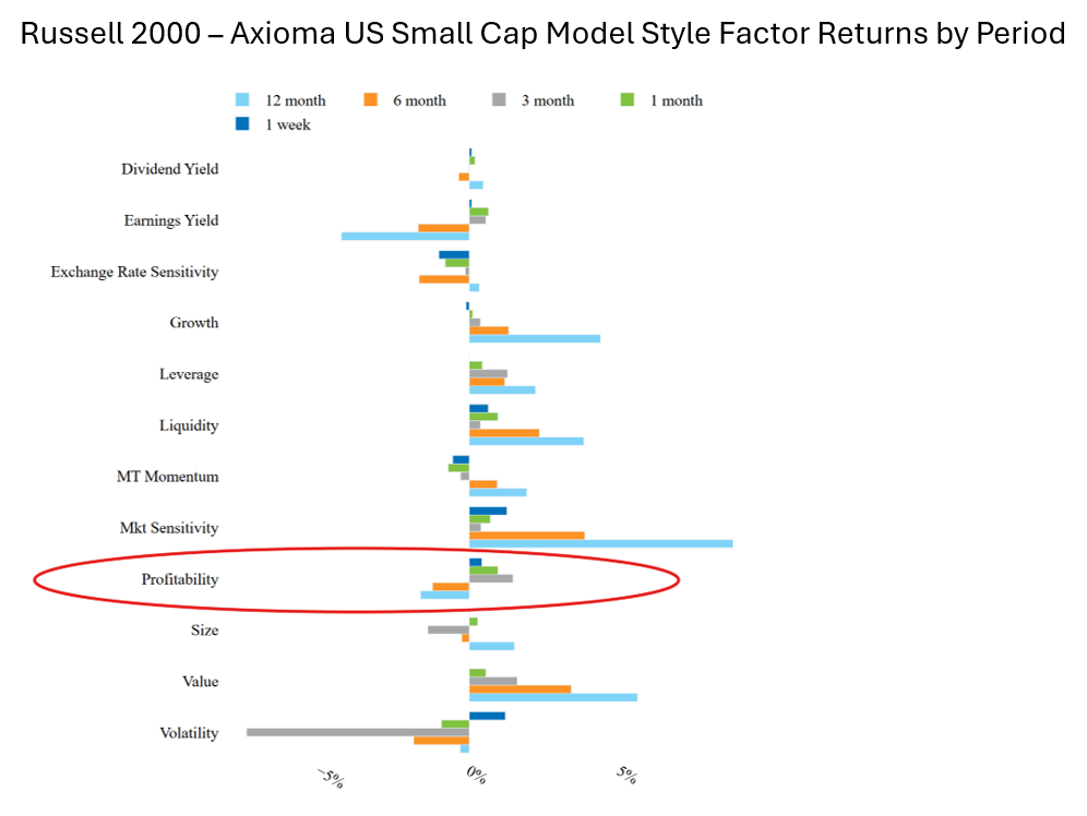 Interestingly, Profitability has the best factor return over the last month after seeing negative returns over the last year, and the risk associated with the Leverage factor is at the high end of its 1 year range. Considering the recent consternation over Private Credit, perhaps market participants are paying more attention to small cap firms’ ability to repay debt.