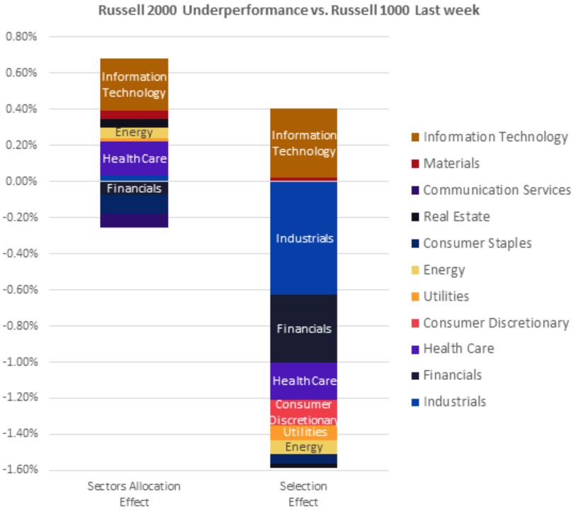 While still showing positive returns, Health Care, Energy, and Utilities were also large contributors to Russell 2000’s underperformance, as their weekly gains were less than half as they were in the Russell 1000.