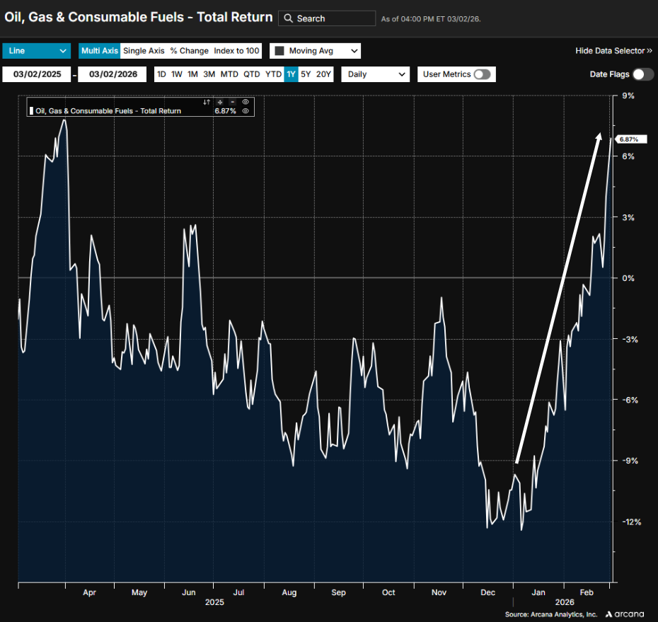 A major source of that anxiety stemmed from escalating tensions in the Middle East. Concerns have been growing since mid January, when the US began deploying air and naval forces to the region at levels not seen since the 2003 Iraq War. Fears of an imminent US strike on Iran—which ultimately occurred over the weekend—pushed crude oil prices higher. Rising energy costs tend to weigh more heavily on small cap companies than on large caps, amplifying their downside.