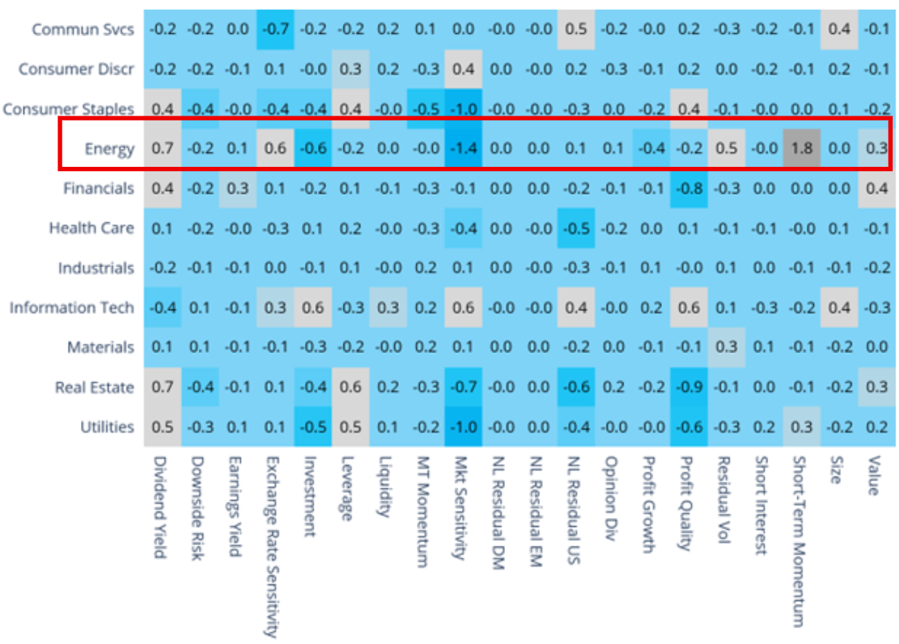 - Energy’s risk soared and many of its style exposures saw big changes