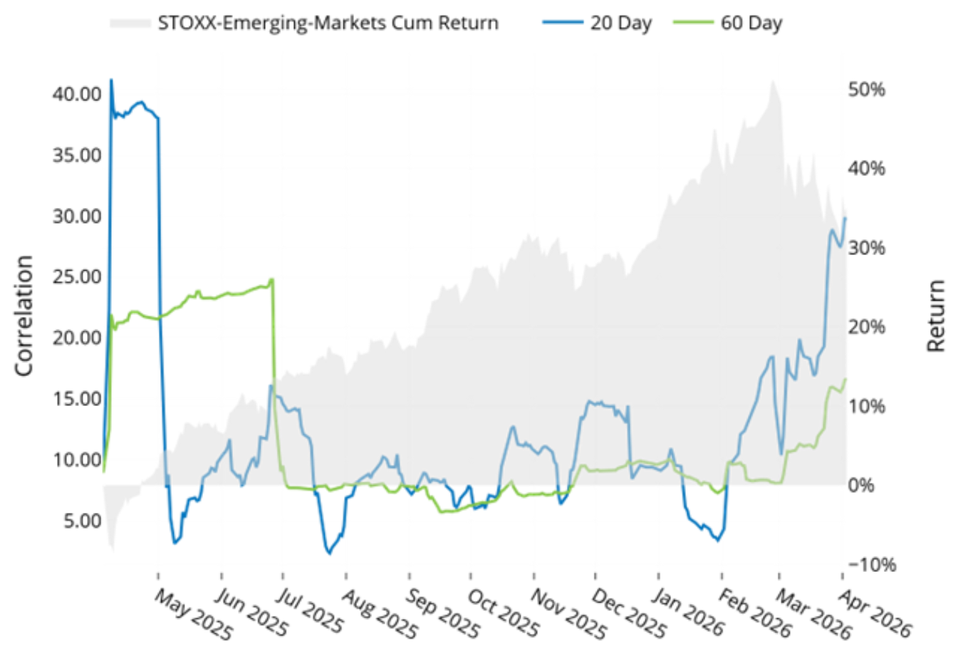 Chart 12, STOXX Emerging Markets- Rolling Average Asset Correlations