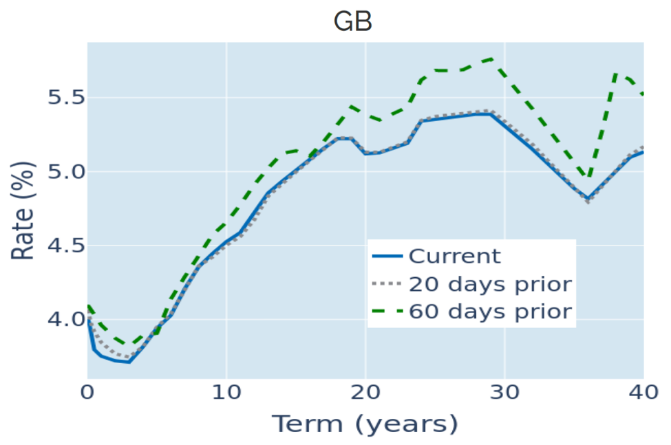 Yield decreases were most pronounced at the long end of the curve, with the 30-year benchmark ending the week 19 basis points lower. This was in contrast to the monetary policy-sensitive 2-year rate, which was largely unchanged, as the Bank of England is still expected to follow the previously projected path of another 2-3 rate cuts, the first of which is anticipated at the next MPC meeting later this month.