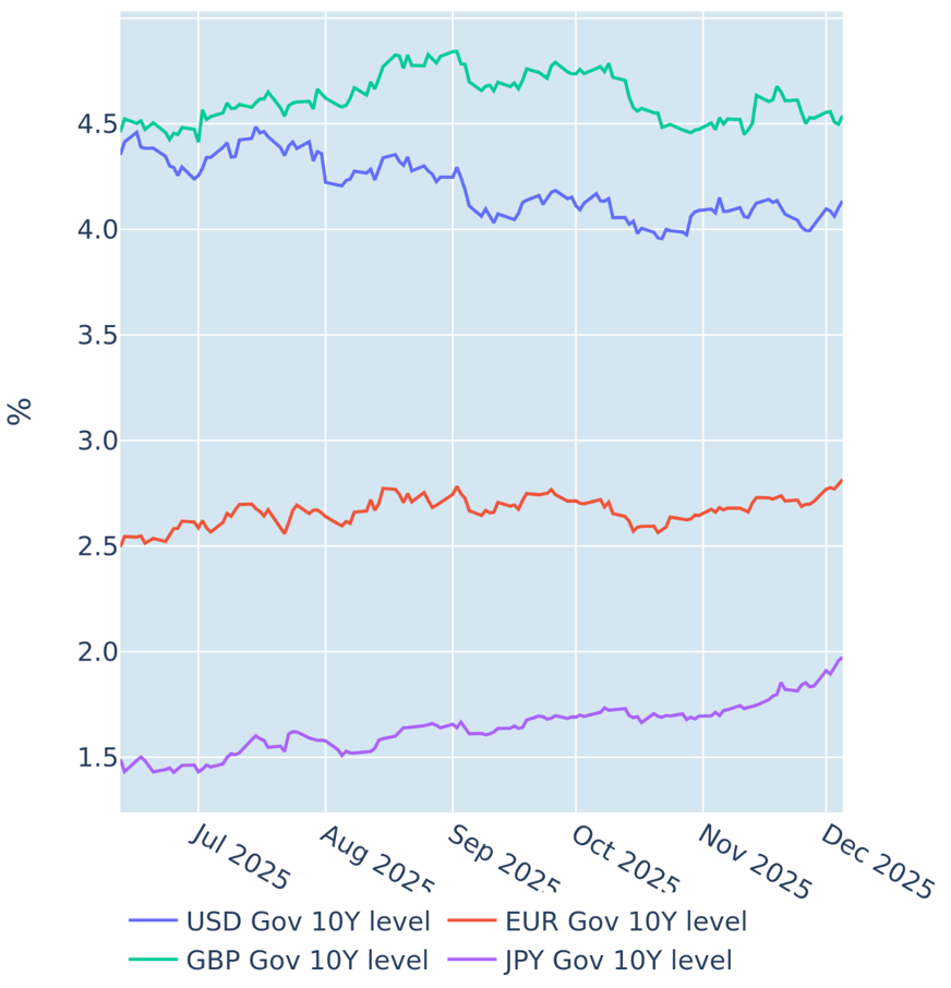 The yen strengthened on the back of the higher rates, which may have prompted some Japanese investors to repatriate their funds from foreign markets. Some of the ripples were felt in other parts of the world, with the German government benchmark ascending to levels last seen in March, while long Treasury yields recorded their biggest weekly increase since Liberation Day. Increased borrowing costs also made the carry trade more expensive, in which traders borrow cheaply in yen and invest the money in higher yielding assets elsewhere, thus reducing demand for the Japanese currency.