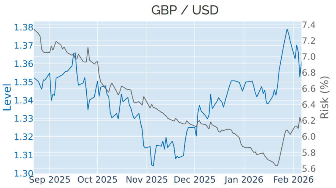 Last week’s political uncertainty and higher long-term borrowing costs also weighed on the pound, which recorded its biggest weekly selloff since late October, when concerns ahead of November’s autumn budget depressed the British currency to a 6-month low against the US dollar and its weakest level against the euro since May 2023. The move raised the predicted volatility for the GBP/USD currency pair to 6.2%, which constitutes the highest level in two months. It needs to be noted, though, that the latest increase in FX rate volatility is part of a broader trend, which started with the “sell-America” trades in the wake of Donald Trump’s tariff threats against European countries as part of his push to acquire Greenland in mid-January and the subsequent rebound after the nomination of Kevin Warsh as the next Fed chair.