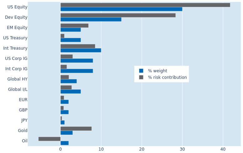 Soaring equity volatility pushed the predicted short term risk of the Axioma global multi asset model portfolio up by 2.5 percentage points to 11.6% as of Thursday, April 2, 2026. US equities accounted for most of the increase, with their share of total portfolio volatility rising from 37.5% to 41.8%. But non US developed shares still contributed a disproportionately high 28.3% of total risk relative to a portfolio weight of 15%, due to the strong positive correlation between local stock markets and exchange rates against the US dollar. Gold remained the riskiest asset, with a risk contribution more than 2.5 times its market value weight, while oil continued to provide diversification benefits and reduce overall portfolio risk.