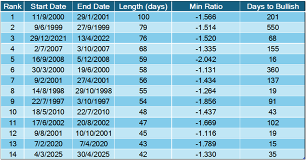 The shortest sentiment “recovery” (15 days) came immediately after the COVID crash, following a massive, coordinated QE effort by major central banks - a feat they are unlikely to repeat in today’s inflationary environment, in the middle of a global oil shock.